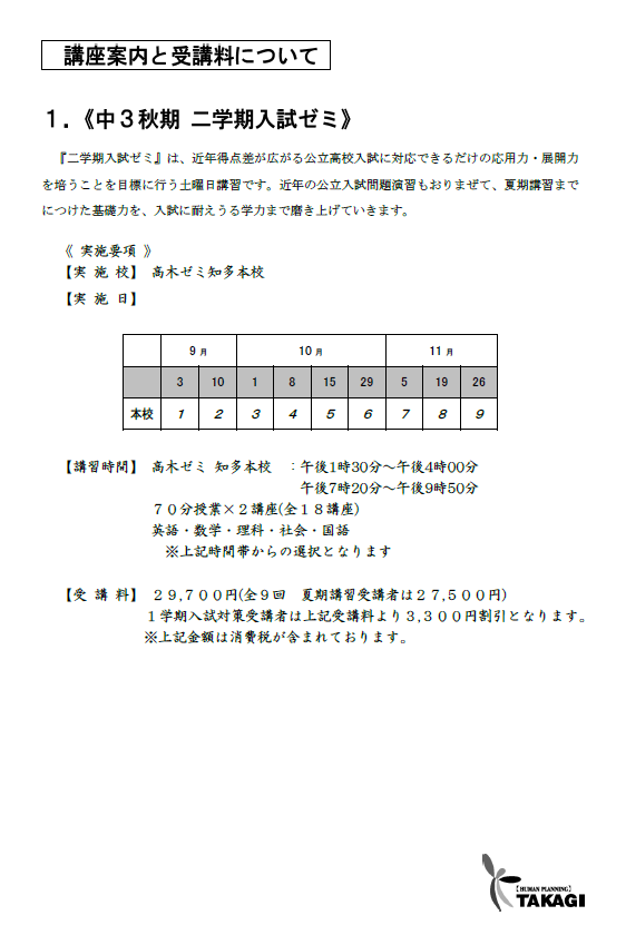 知多市・常滑市の進学塾・学習塾【高木ゼミ】